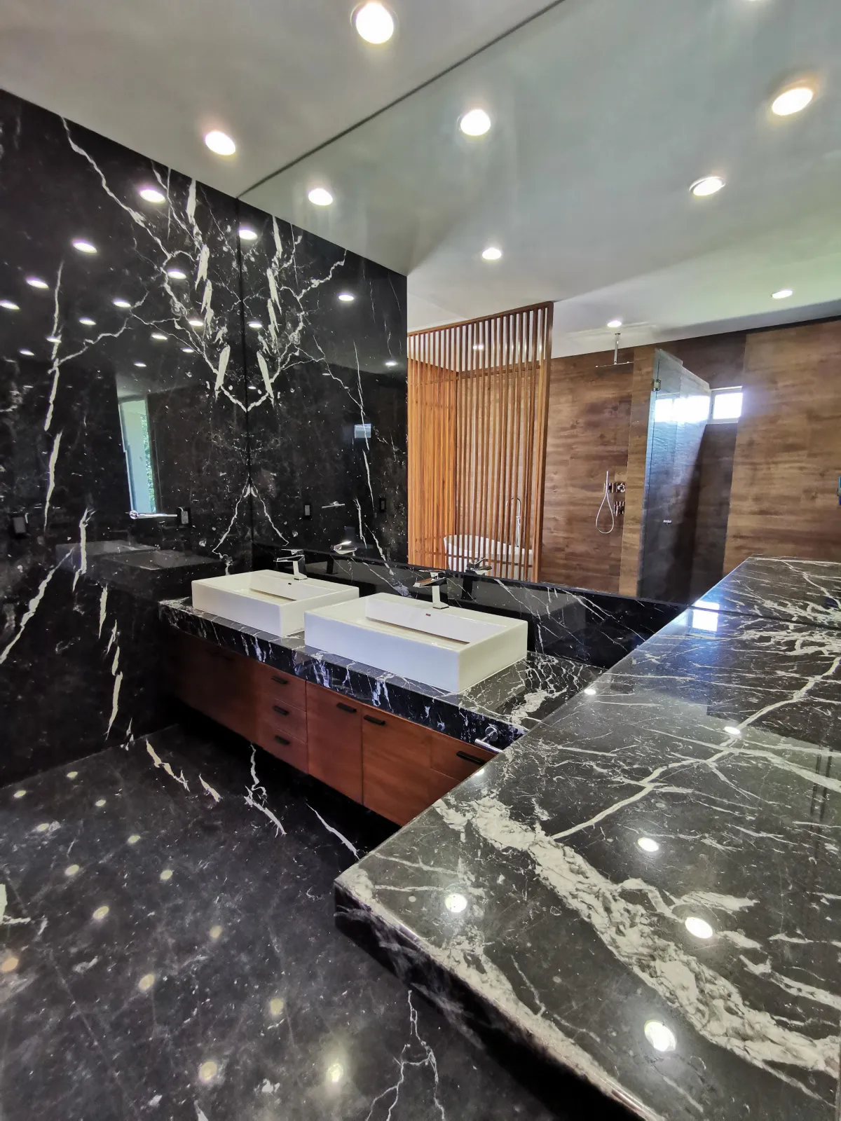 La arquitectura de Casa Bosque de los Lagos celebra el encuentro entre la estética moderna y la calidez de los materiales orgánicos. Cada elemento —madera, mármol, cristal y piedra — fue cuidadosamente seleccionado para crear atmósferas que invitan a disfrutar el tiempo. Los espacios fluyen con luz y aire, integrando el interior con la belleza del entorno boscoso.